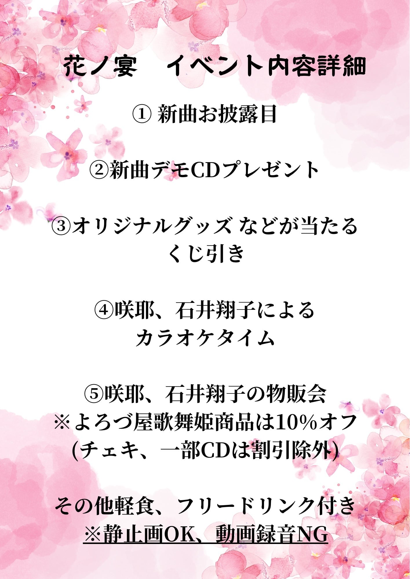 ・録音、動画撮影は禁止です。静止画は可。